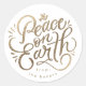 Peace on Earth with dove faux-gold modern script Classic Round Sticker