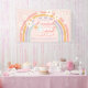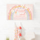 Retro inspired Peace out single digits 10th birthday sign with hippie style pastel rainbow, and daisies