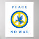 Blue and yellow peace symbol and text "PEACE - NO WAR"