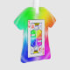A playing card design of a King wearing a rainbow tie-dye t-shirt and making the peace sign, with the peace symbol as the card suit.
