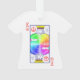 A playing card design of a King wearing a rainbow tie-dye t-shirt and making the peace sign, with the peace symbol as the card suit.