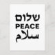 Peace Shalom Salaam black and white modern typography holiday postcard.