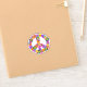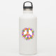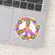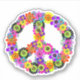 A floral peace sign in shades of pink, turquoise, yellow, orange, purple, green and black.