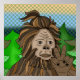 Hand drawn retro pop art Sasquatch or Bigfoot doing a peace sign.