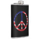 The classic peace sign superimposed over a US Flag painting on your choice of background colour.