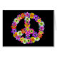 A floral peace sign in shades of pink, yellow, orange, purple, green, white and black.