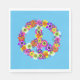 This paper napkin flaunts a floral peace sign in shades of pink, turquoise, yellow, orange, purple, green and black.