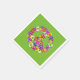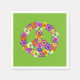 This paper napkin flaunts a floral peace sign shades of pink, turquoise, yellow, orange, purple, green and black.