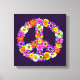 A floral peace sign in shades of pink, yellow, orange, purple, green, white and black.
