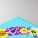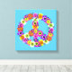 A floral peace sign in shades of pink, yellow, orange, purple, green, white and black.