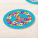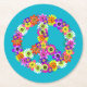 Peace Sign Floral on Turquoise Round Paper Coaster