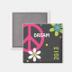 Bold, bright "peace sign" locker magnet that you can customise with your own word and/or year.