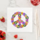 This paper napkin has a floral peace sign in shades of pink, turquoise, yellow, orange, purple, green and black.