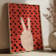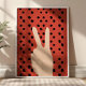 This bold, playful poster features a classic peace sign set against a vibrant red background filled with evenly spaced dots. The graphic, preppy design blends retro charm with modern simplicity, making it an eye-catching statement piece that adds energy, positivity, and a pop of color to any space.