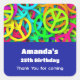 Event thank you stickers with a sixties vibe. Cool peace signs in bright and vibrant colours featuring all the colours of the rainbow.