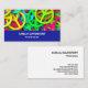 Business cards with a sixties vibe. Cool peace signs in bright and vibrant neon colours featuring all the colours of the rainbow.