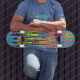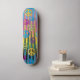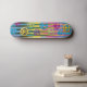 Bright coloured peace signs on a wild coloured background makes a unique skateboard design!