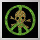 Dapper skull and bones in the middle of a peace sign invites you to spread the antiwar word so we can have world peace.