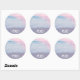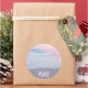 Round glossy sticker with a beautiful ocean scene and 'peace' typography.