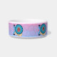 This is a heavy, durable bowl decorated with Tibbies of many colors, the perfect size for hungry/thirsty Tibs. The design is interesting and printing clear.