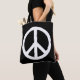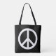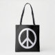 Peace symbol shoulder tote bag in black and white or custom colours. Change into any colour combination. Make your own modern anti war symbol bags for shopping, work and more. Double side print. Add your own personalised text optionally. Medium and big size available.