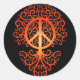 This elaborate red tree design features the symbol for peace in the middle of flowing tribal branches. Large roots spread out of the bottom of this symmetrical pattern with the trunk running up the middle. The tree sits on a pure black background which creates a stunning contrast. The branches and roots are made up of delicate swirls and lines which come together to create a stylish sticker design.