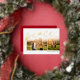 Send a family Christmas card with a meaningful message with this two-photo foil holiday card. Featuring a modern script "peace" framing a horizontal photo and a vertical photo, this stylish design also has space for name, year and even a personalised greeting on the front. The festive red backer is speckled with stars and features room for a longer family message or update. This Christmas photo card is great for families, as a grandparent photo card, a couple's holiday card and more. Find more colours and styles by Lea Delaveris Design.