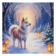 Peaceful Akita on Snow Lantern Path Christmas Dog Poster
