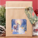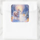Peaceful Akita on Snow Lantern Path Christmas Dog Square Sticker