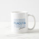 Embrace a moment of serenity with this "Peaceful" aesthetic mug. The design features a trendy retro wavy typography layout in calming shades of blue, creating a gentle motion effect that soothes the eyes. It serves as a perfect daily reminder to slow down and breathe, whether you are enjoying your morning coffee, afternoon tea, or keeping hydrated at your office desk.