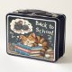 This serene lunchbox features a relaxed cat napping on a stack of books dreaming of mice. The design emphasises tranquillity and calm. "BACK TO SCHOOL" is written in a soft flowing script font. Perfect for those seeking a moment of peace.