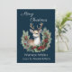 Peaceful Deer, with Holly Wreath, on Dark Blue Holiday Card