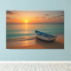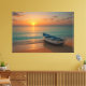 Peaceful Golden Sunset with Boat on Beach Canvas Print