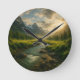 Bring calm and natural beauty into your space with this peaceful mountain river landscape round wall clock. Featuring lush green valleys, flowing water, and warm sunlight, this nature-inspired clock adds a relaxing and refreshing atmosphere to any room.