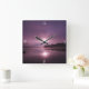 Peaceful Pink/Plum Sunrise Landscape over Water Square Wall Clock
