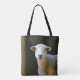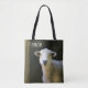 This all over print tote bag features a sweet ole sheep standing in the doorway to his home in New England.