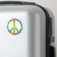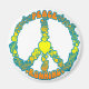 Retro peace symbol design with Peace, Heart, Running in orange, yellow and blue.