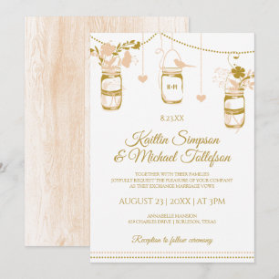 Southern Peach and Gold Floral Wedding Invitation