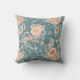 Peach and Blue Floral on Medium Teal Throw Pillow
