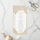 This wedding program features a minimalist peach and gold design, blending gentle warmth with timeless elegance. The front page presents the couple’s names inside a golden frame set against a soft peach background, radiating charm and sophistication. The back page carries the complete wedding details in a clean, modern layout accented with subtle gold highlights. The combination of peach’s romantic softness with golden luxury makes this design ideal for elegant, formal, and modern celebrations.