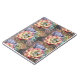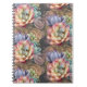 A small group of peach, green and purple succulents sit on top of a peach and gold coloured transparent alcohol ink painting. The pattern is large as the images just barely overlap, and the bright pastel colours stand out against a dark grey background in this beautiful floral design.