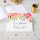 Peach and Pink Peony Flowers Grey Wedding Guest Book