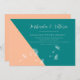 The design features bold colours - peach and teal with - white dandelion seeds.