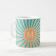 Groovy grunge retro style sunshine design with turquoise, peach and beige sun rays on beige background for summer lovers. It's easy to change the name and personalise it.