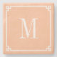 Peach and White Thin Greek Key Border Monogram Stone Coaster