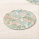 Peach Aqua Green Tropical Leaves Round Paper Coaster