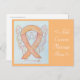 The guardian angel postcard art print features the picture of a peach awareness ribbon angel painting. Add your own optional words or message to the postcard for personalised angel art cards! You can also remove the text for an art only angel postcard print. The peach awareness angel ribbon painting postcards can be customised with personalised messages to make great awareness cause images or pictures for fundraisers, awareness gifts, or other special events. Give this angel art as an awareness ribbon gift for any occasion.