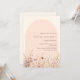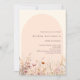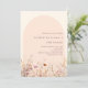 An elegant wildflower invitation. A cream, beige coloured background and a peach coloured arch. Decorated with watercolored wildflowers in beige, pink.