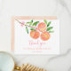 This cute birthday thank you card features hand painted watercolor peaches, peach blossoms and vibrant leaves.