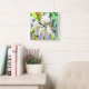 Peach Blossom Hummingbird Square Wall Clock
